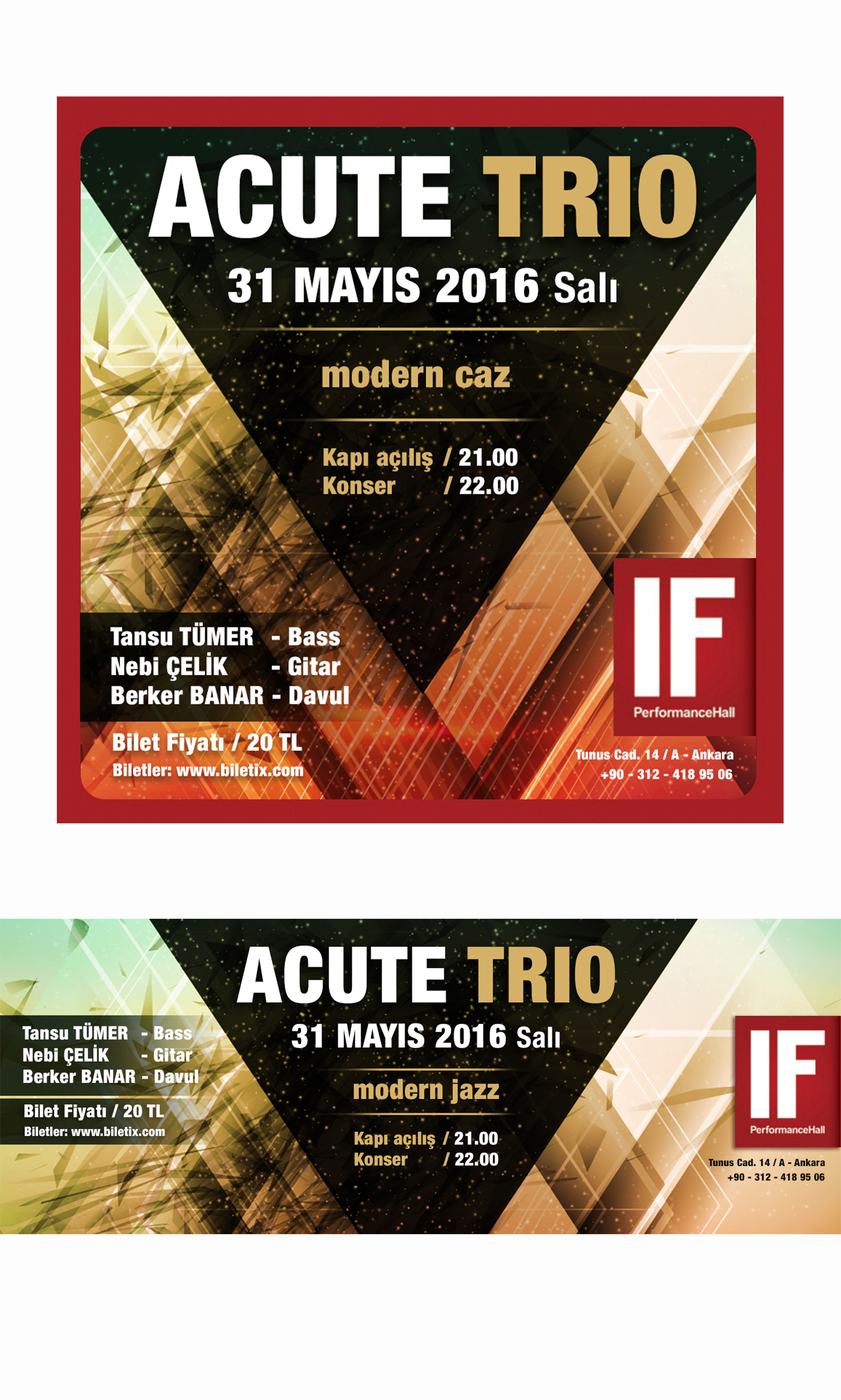 As modern jazz demands a modern aesthetic, for Acute Trio’s performance at IF Performance Hall, I designed sleek, rhythmic visuals that echo the band’s vibrant sound, ensuring the promotional materials felt as dynamic as their music.