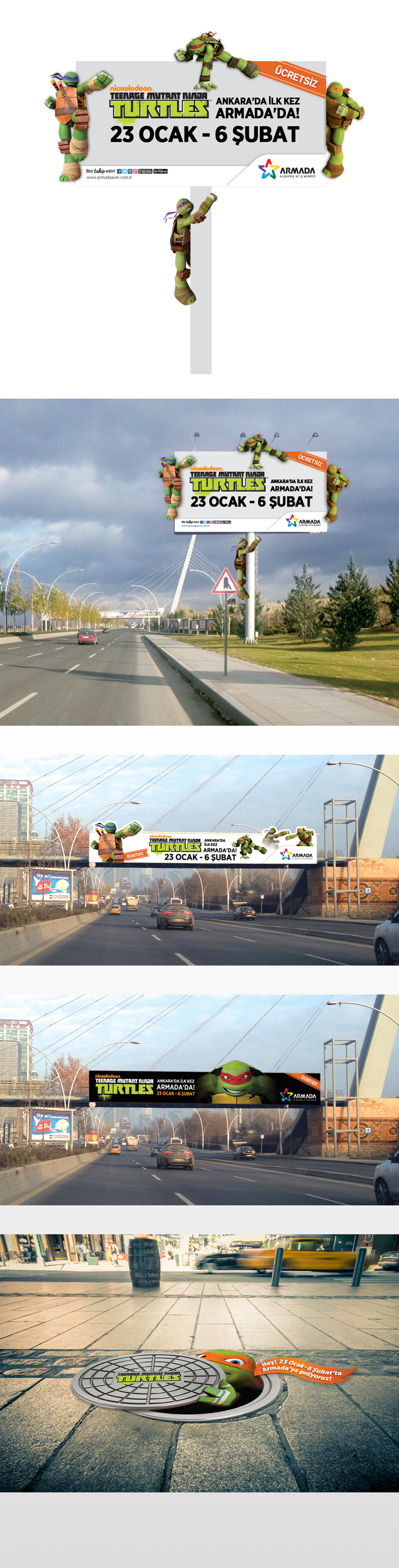 For Armada AVM – shopping center, Ninja Turtles event, I created large-scale outdoor advertisements and event billboards for a themed attraction.