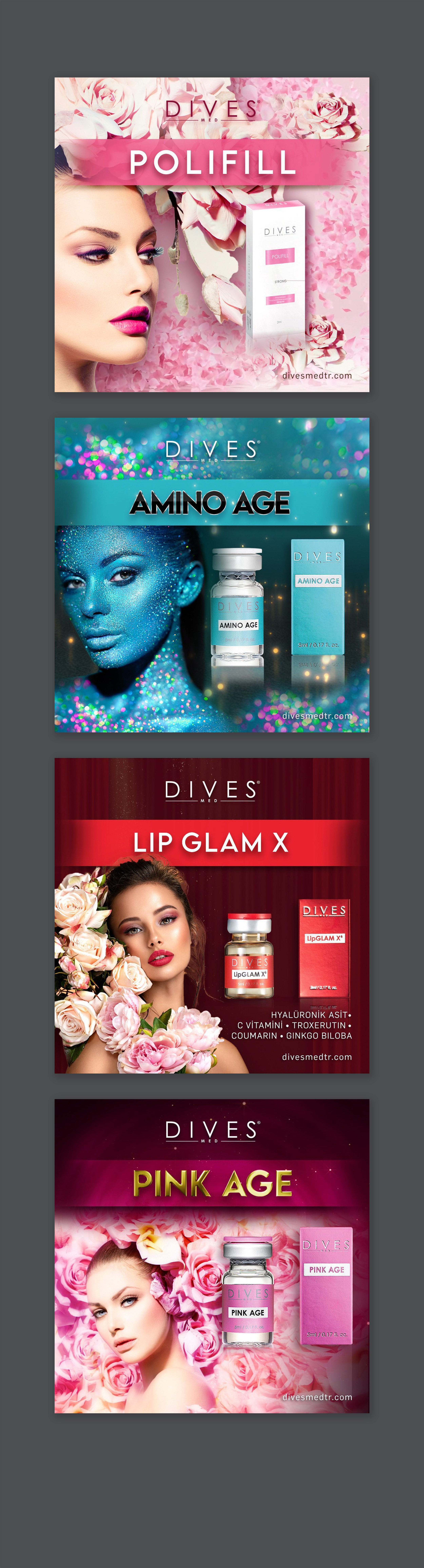 For Dives, I designed a refined set of visuals that exude freshness and luxury, ensuring the brand’s aesthetic that aligns with the elegance of their beauty line skincare products.