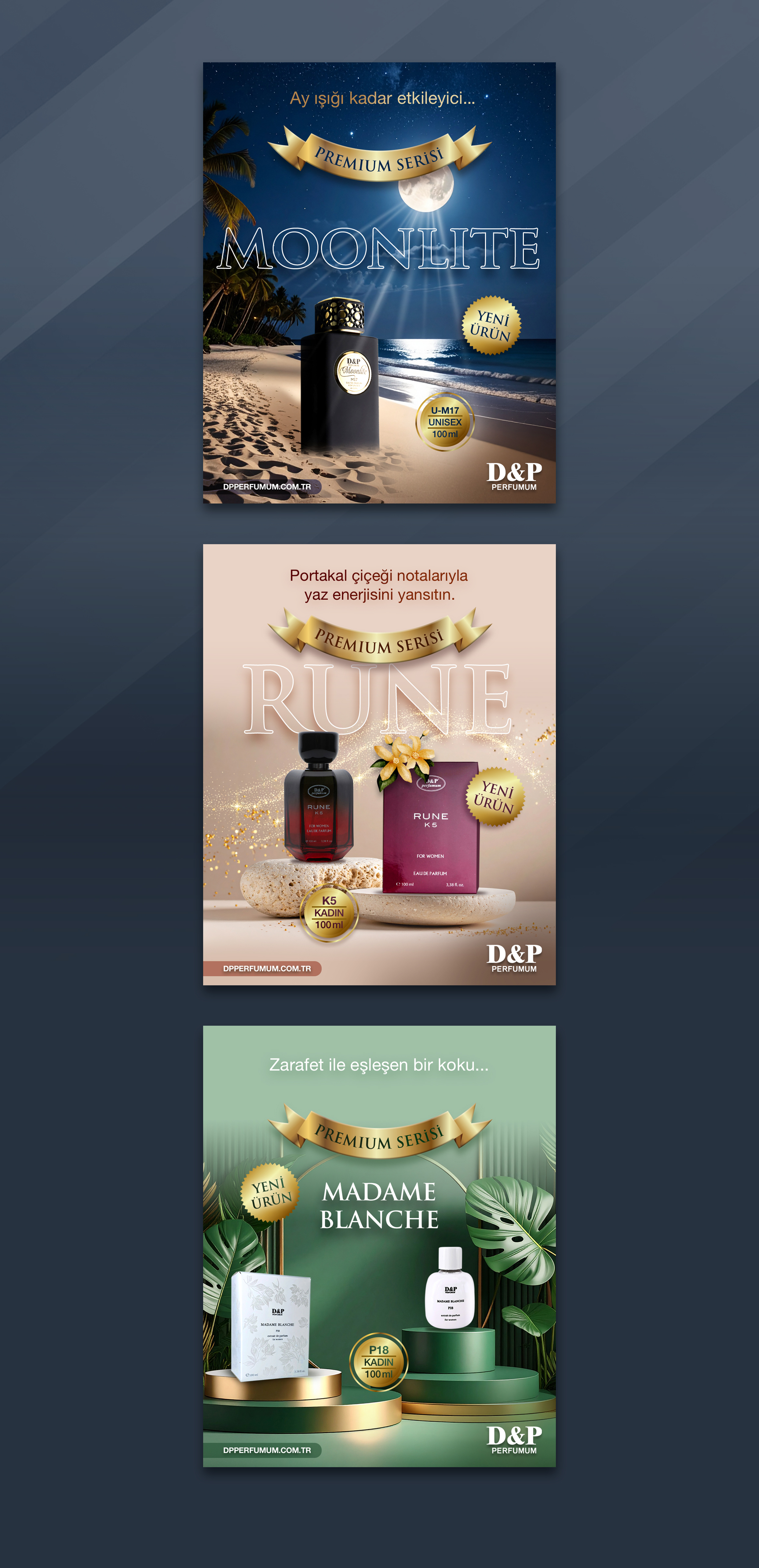 Poster and Social media visual designs for D&P – brand known for creating high-quality fragrances inspired by well-known originals and widely recognized for its popularity and strong market presence.
